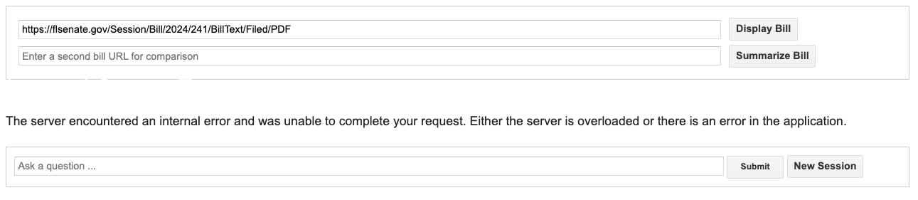 Enter the URL for a bill that you would like to review into the Bill URL field. For example, the following URL is for HB 241 from the Florida 2024 session: